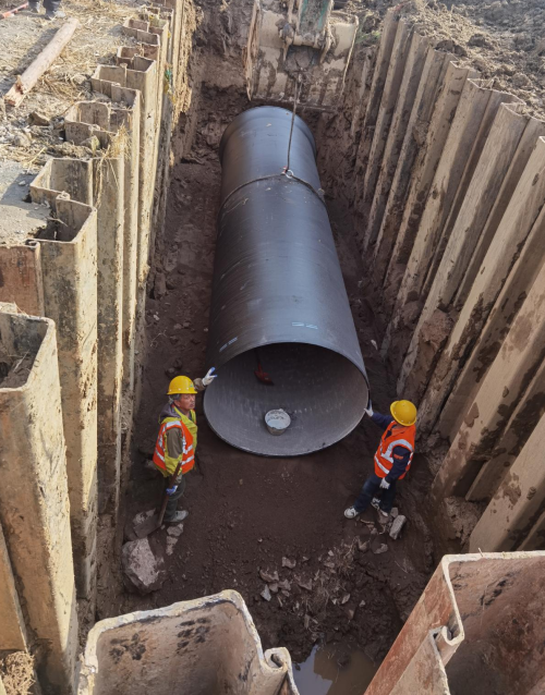 “漢江原水輸水管道復(fù)線工程分兩個標(biāo)段分別招標(biāo)建設(shè),其中AF段管道長度約23公里,截至目前,B段已完成1561m,C段完成3712m,D段261m,E段197m,F(xiàn)段32m,泵站段完成514m,已完成總工程量的27%?!笔┕がF(xiàn)場,該工程項目負(fù)責(zé)人介紹。除了搶抓工期,施工方還通過增加作業(yè)面,增加人手等方式,全力推進(jìn)項目建設(shè)進(jìn)度。