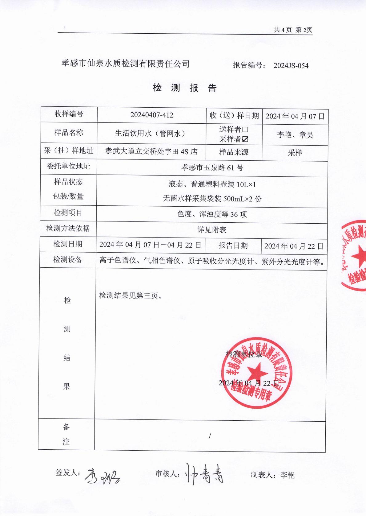 2024年4月檢測報(bào)告